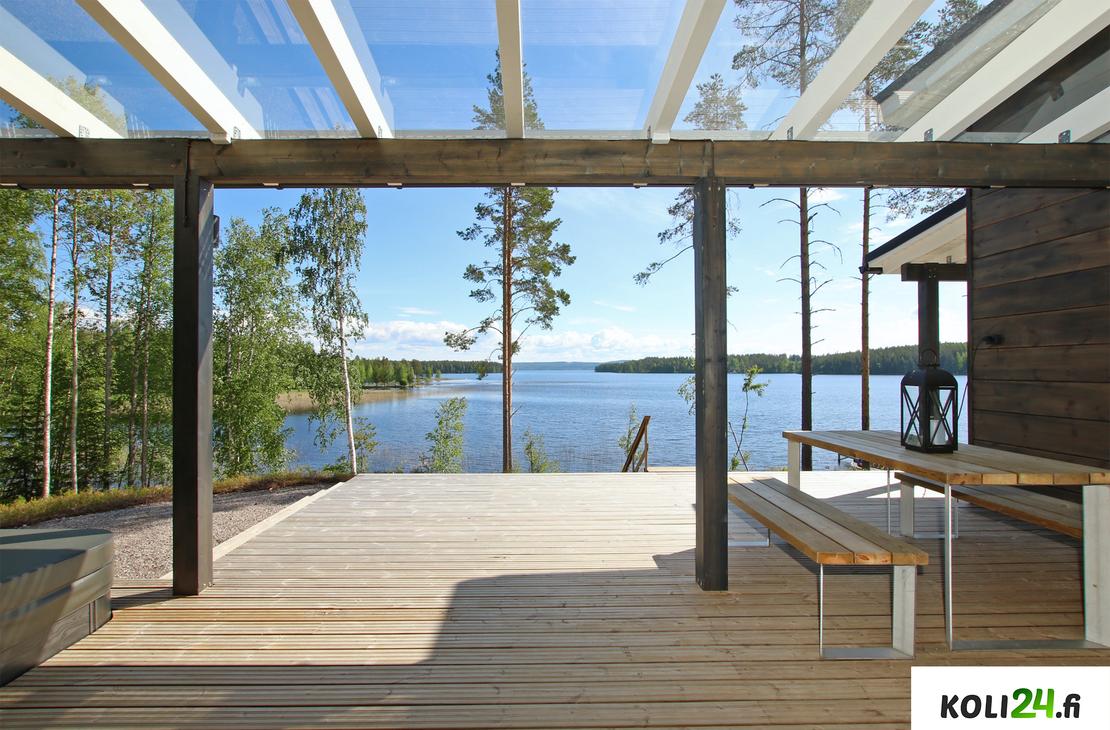 Mökissä on todella tilava 24 neliön terassi. Terassilla on 7 hengen rentouttava ulkoporeamme käytössäsi lisämaksua vastaan. Poreammeessa rentoutuessa pääset ihastelemaan lasikaton lävitse tähtitaivasta ja revontulten loistoa. Tästä ei mökkiloma enää parane.