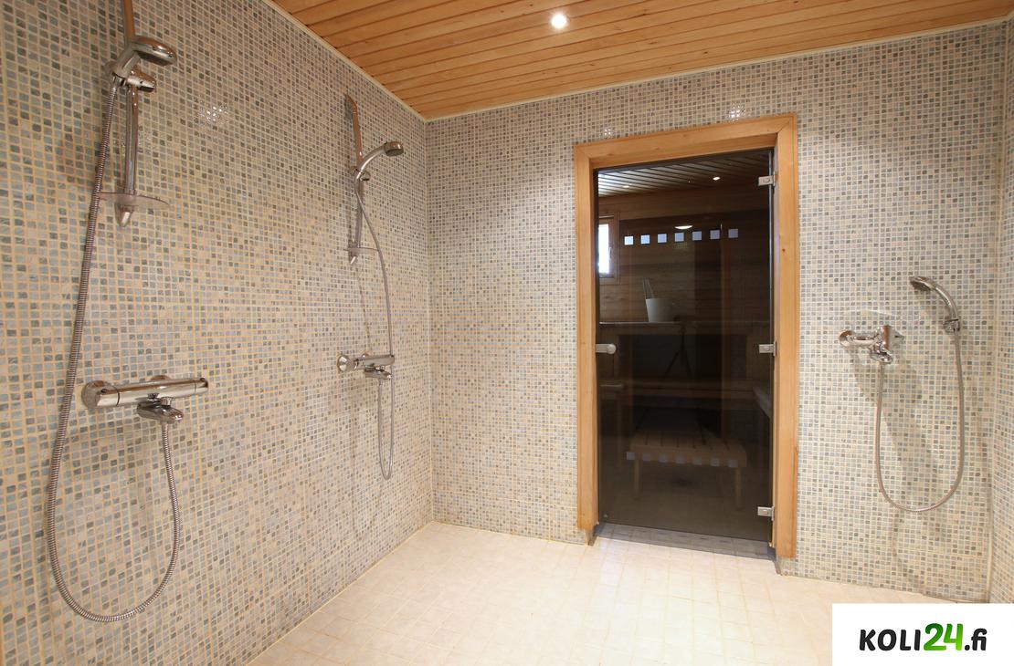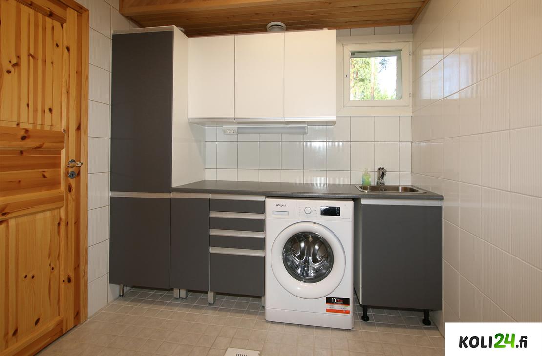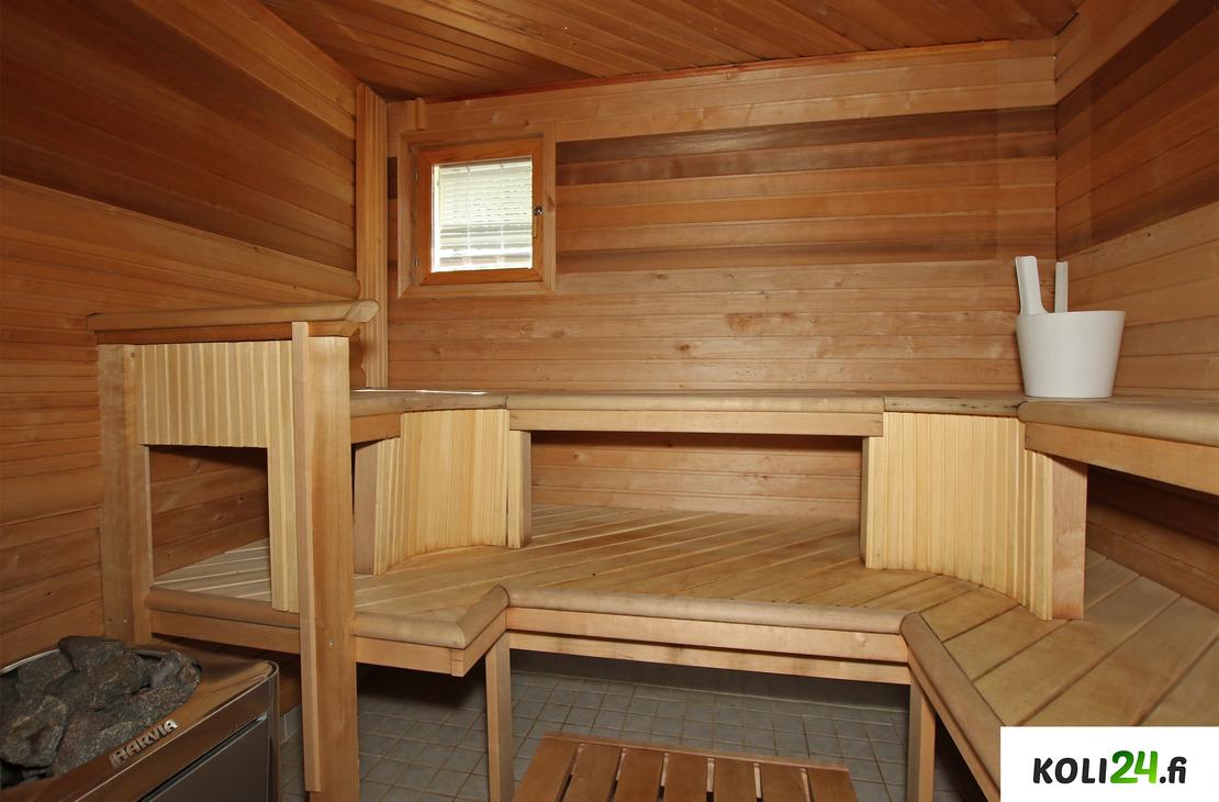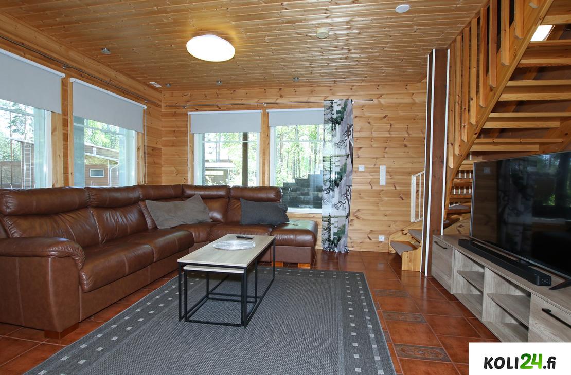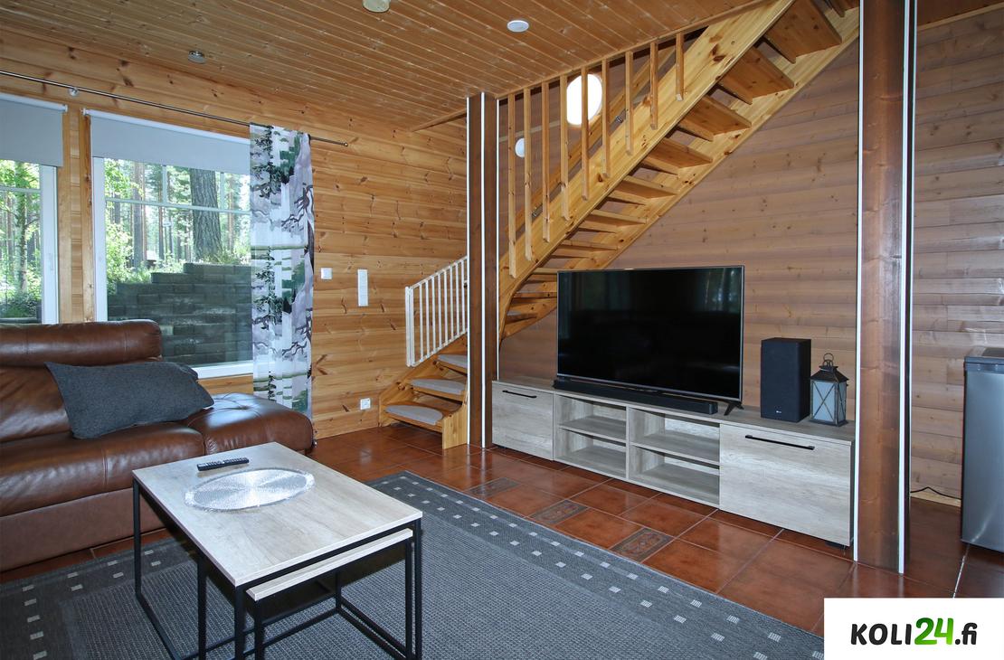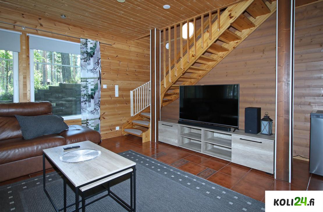 Alakerrassa: Olohuone, 1 makuuhuone, wc, kylpyhuone ja sauna.