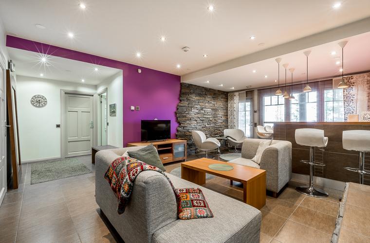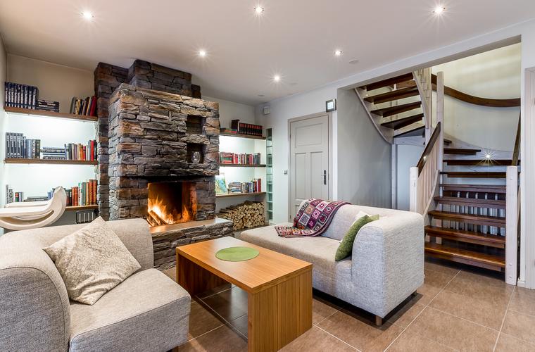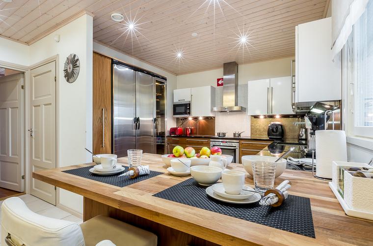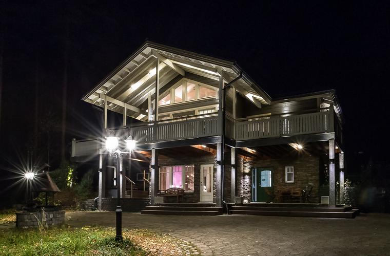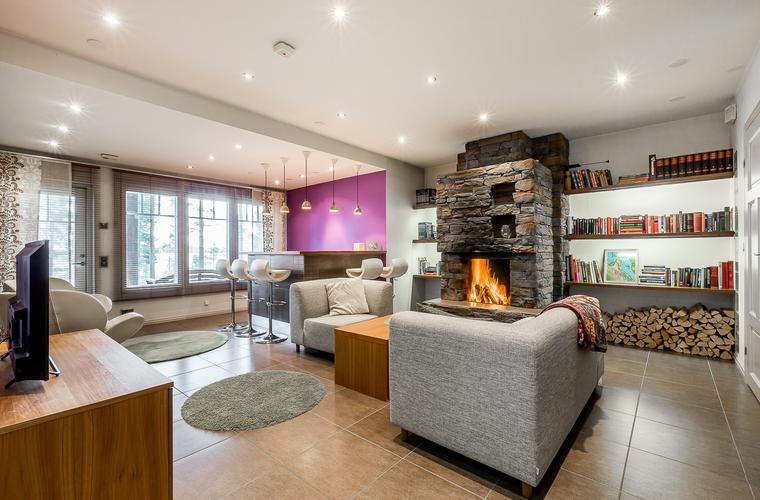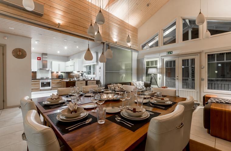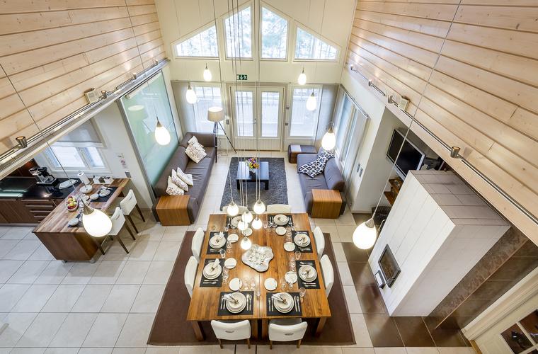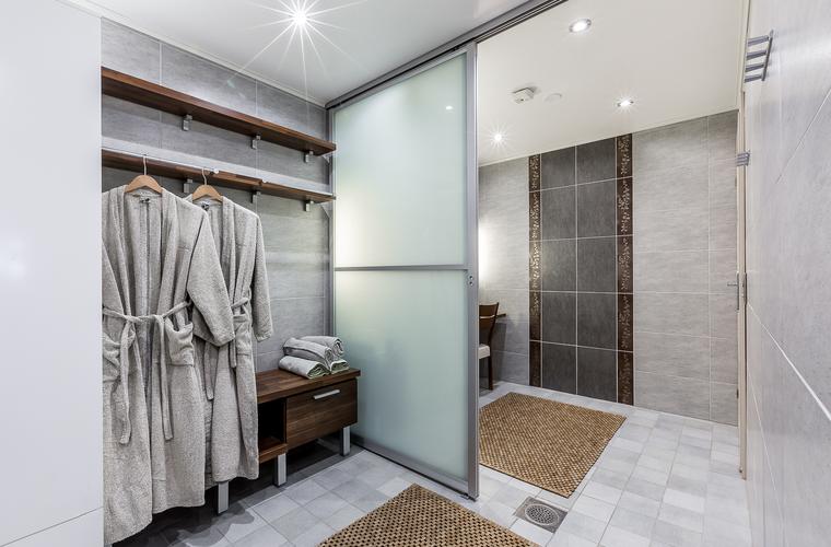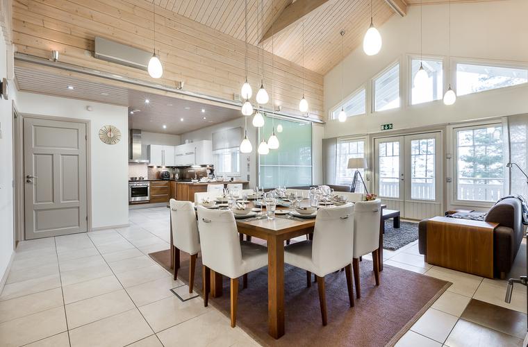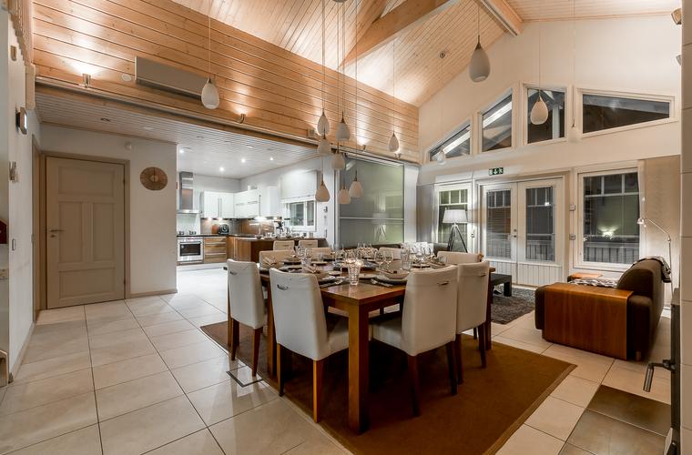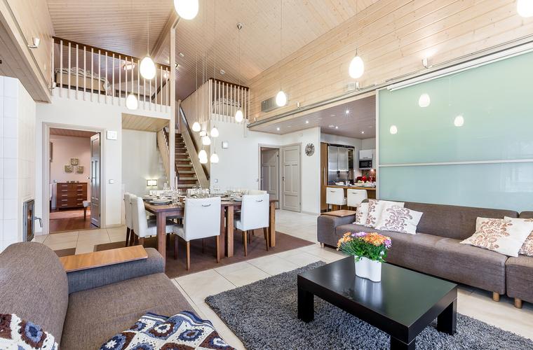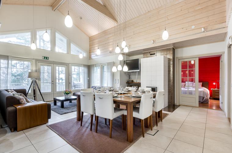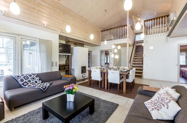 Alakerran ainutlaatuisessa kylpylässä ja tunnelmallisessa takkatuvassa rentoudut saunoen ja seurustellen. Yläkerran pääasuinkerroksesta löydät tilaa ruokailuun ja oleskeluun sekä kolme suurta makuuhuonetta. Molemmista kerroksista on käynti tilavalle terassille, joka palvelee erityisesti kesäisiä vierailijoita.